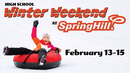 Winter Weekend at SpringHill campus for High School students is on February 13-15, 2026! There will be loads of indoor and outdoor activities. Camp costs $100 and includes food, activities, housing, and travel. Our registration is currently full, but you can still sign up for our waitlist!